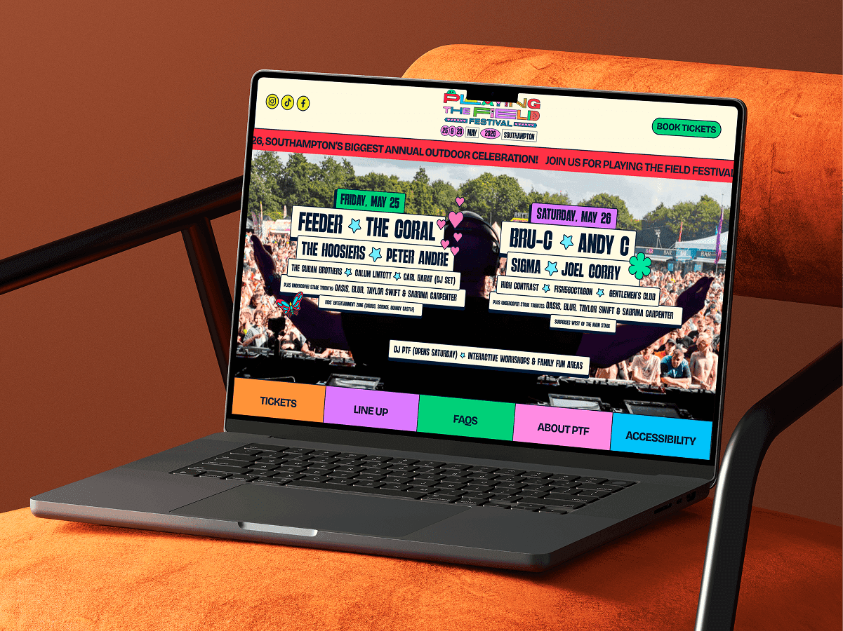 Visual elements from the festival’s psychedelic artwork were woven into the site’s colour palette and layout to bring the brand identity to life online—without overwhelming the user experience.