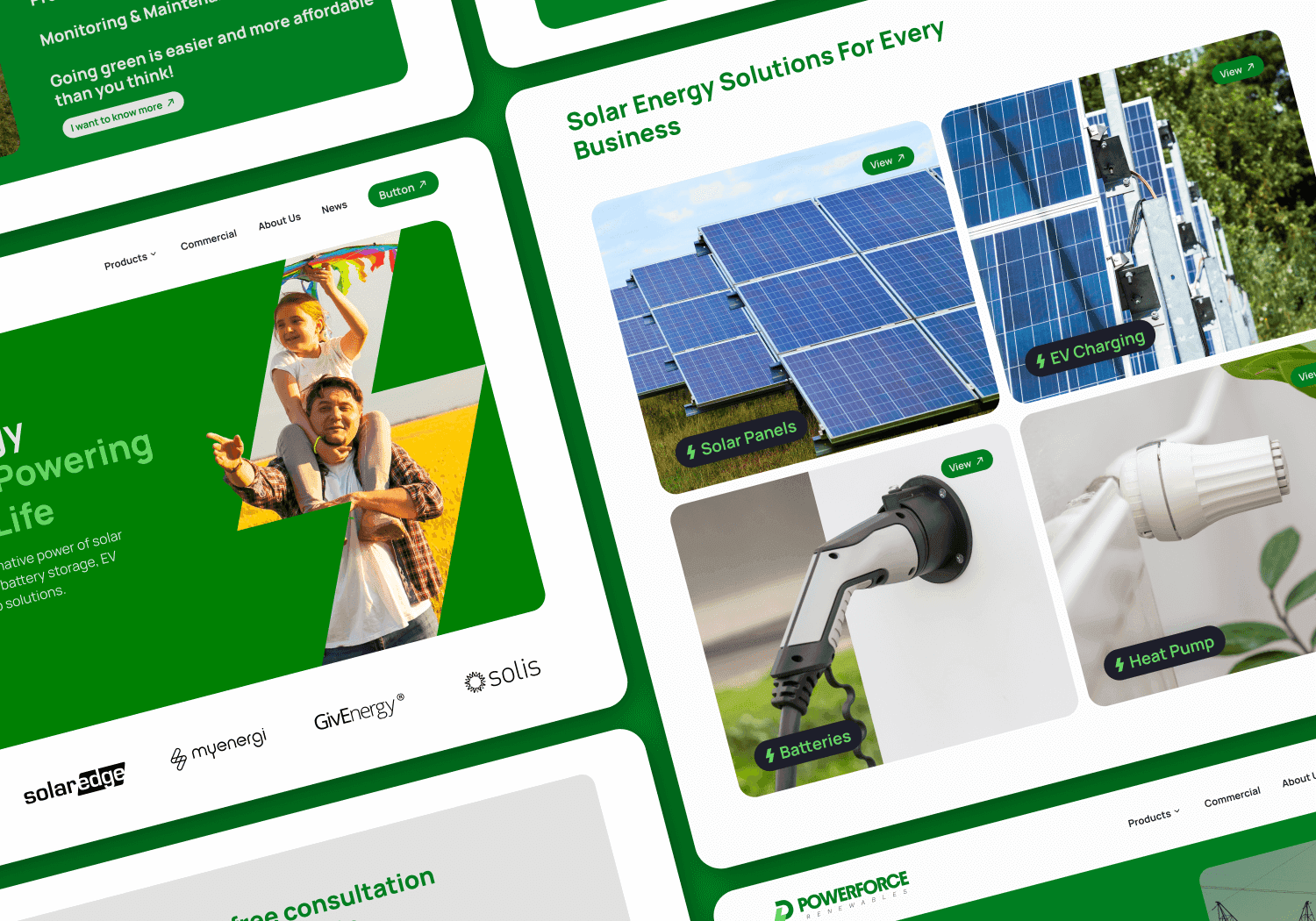Powerforce Renewables needed a clear and trustworthy digital presence to educate users and generate enquiries—especially given the complexity of solar solutions and the lack of a prior website. The design strategy focused on simplifying technical content without sacrificing depth. A clean layout, intuitive navigation, and high-quality visuals helped present services in an accessible way.